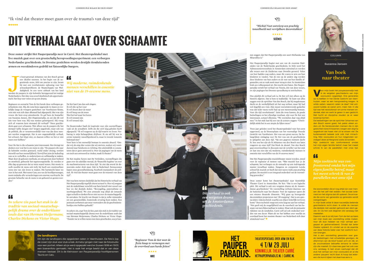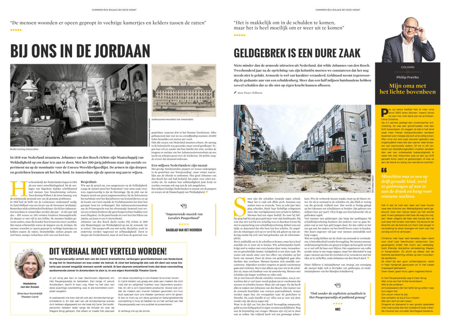Een muziektheaterspektakel over één van de meest dramatische, verborgen geschiedenissen van Nederland over een grootschalig heropvoedingsexperiment welke plaatsvond in de 19e eeuw. Op basis van bestaand campagnemateriaal werd een ontwerp gemaakt voor een krantbijlage. Deze speciale editie werd als bijlage toegevoegd bij de Trouw, Volkskrant en Het Parool.