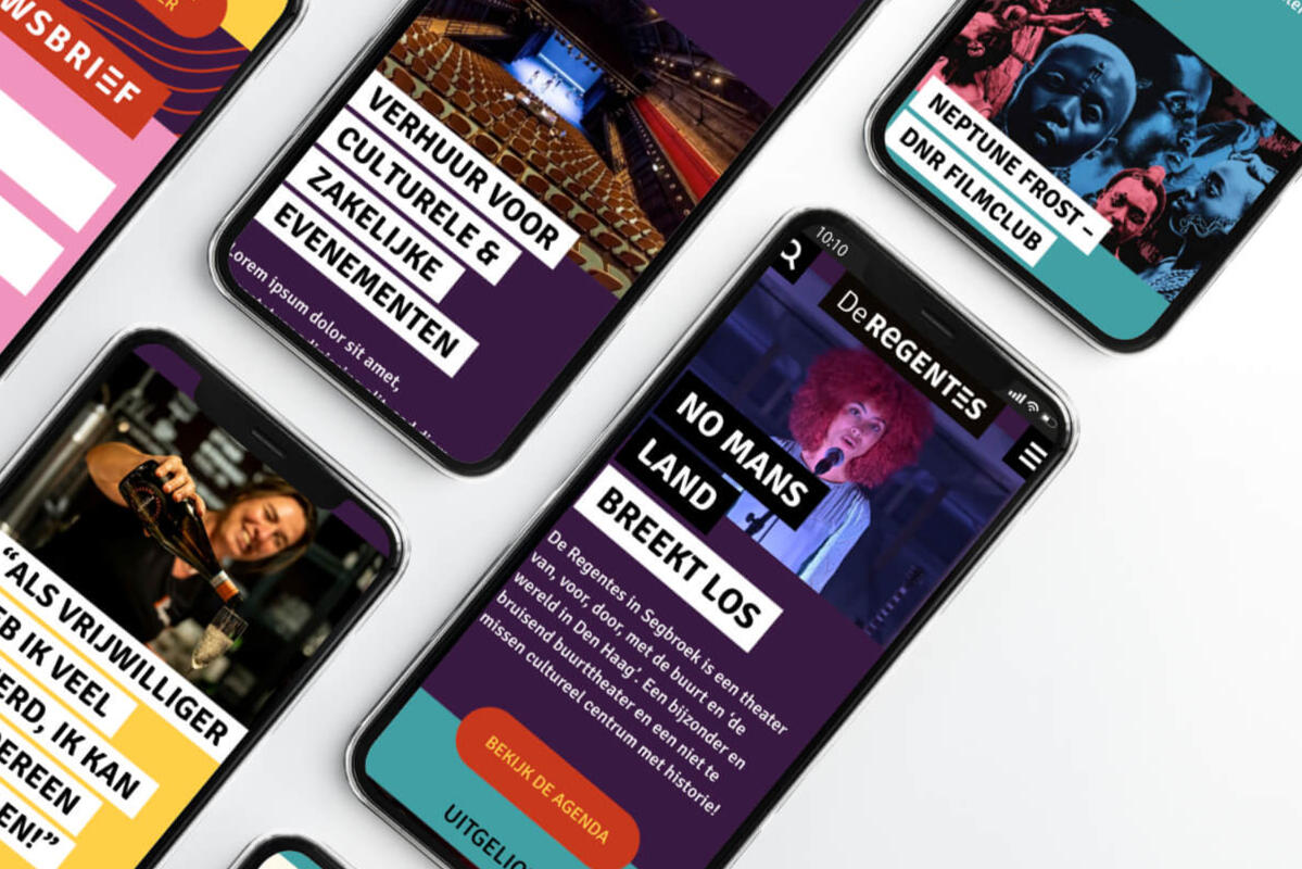 Op basis van de nieuw ontworpen huisstijl door Prik! Media is een uitwerking gemaakt voor de nieuwe website van Theater de Regentes